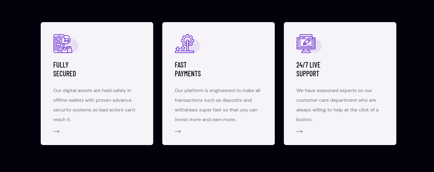 We help millions of people, firms and organistaions to get an amazing high returns on their crypto asset investments & cryptocurrencies with reliable 24/7 support. To make Crypto investment truly accessible to everyone regardless of investment size, technical background or experience in cryptocurrencies.