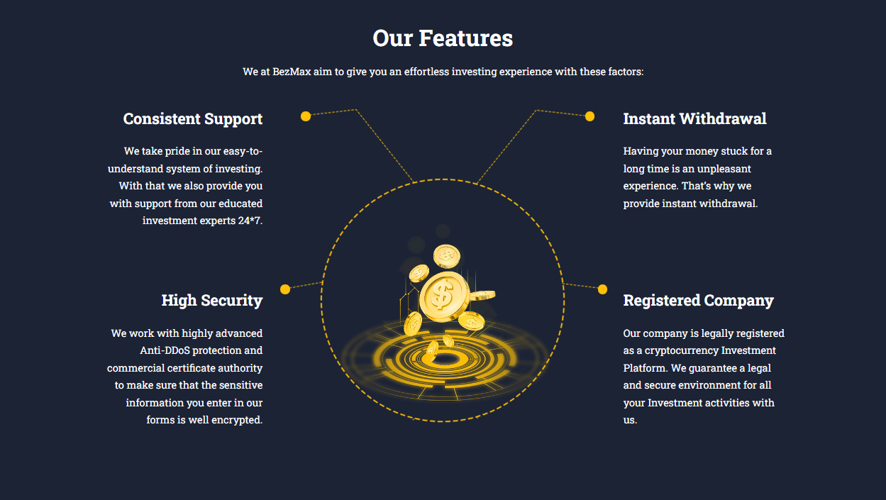 We provides cryptocurrency investment and trading solutions, our platform creates an accessible user-friendly and efficient environment for online trading and investment of crypto. Your investments are managed by intelligent crypto experts, investors, crypto forecasters and analysts in order to yield the best possible return for you. So we have created a platform that offers a different and innovative approach to trading cryptocurrency.